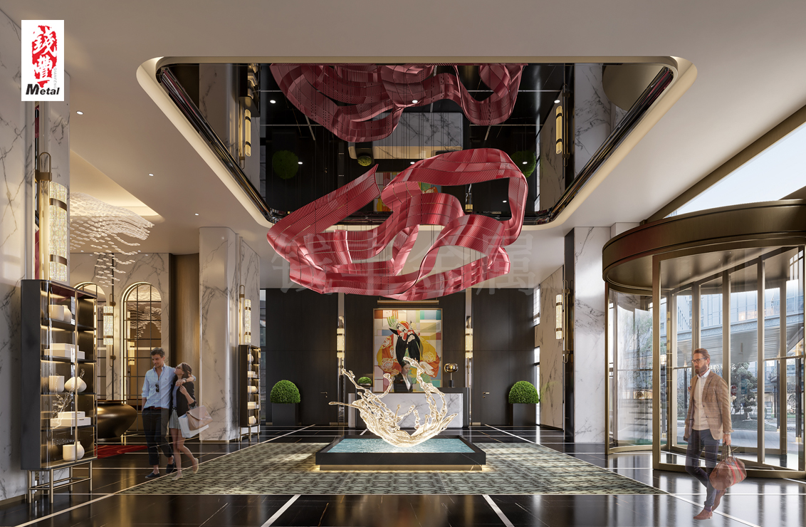 二、獨特的裝飾效果不銹鋼鏡面板憑借其獨特的金屬質感和鏡面效果,為吊頂幕墻增添了別樣的現代感和時尚氣息。鏡面的反射性能使得整個空間顯得更加明亮通透,同時也能夠增加視覺的延伸感,營造出寬敞高大的空間感,讓人倍感舒適與寬廣。