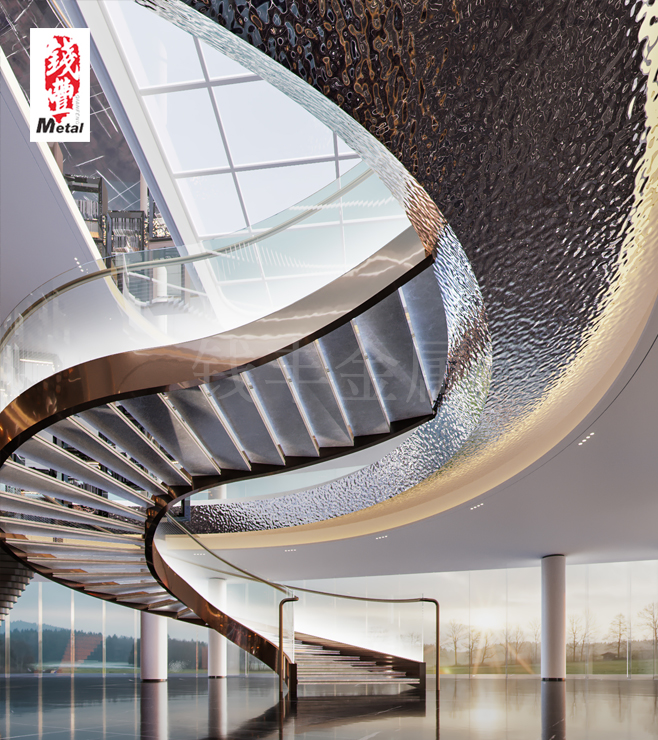 在室內裝修設計中,不銹鋼水波紋板的應用極為廣泛。可以將其運用于墻面裝飾,打造出別具一格的藝術效果;也可以用于吊頂和隔斷墻的構建,不僅美觀大方,還能有效隔音、阻燃。此外,不銹鋼水波紋板可以制作成家具、樓梯扶手等功能性產品,使整個室內空間的設計更加協調統一。